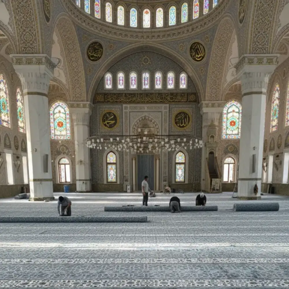Our mosque carpets Abu Dhabi are budget-friendly yet luxurious. Every carpet reflects value, durability, and timeless Islamic beauty, making it a perfect addition to any prayer hall. We also provide expert installation services in Abu Dhabi and across the UAE. Our skilled team ensures smooth, precise fitting and seamless finishing.